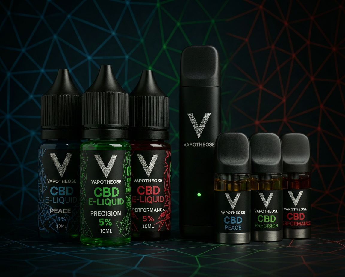 Chez Vapotheose, chaque détail compte. Nos cartouches et fioles CBD sont développées avec des laboratoires france certifiés, sans THC, sans nicotine, pour une expérience pure, élégante et relaxante.
